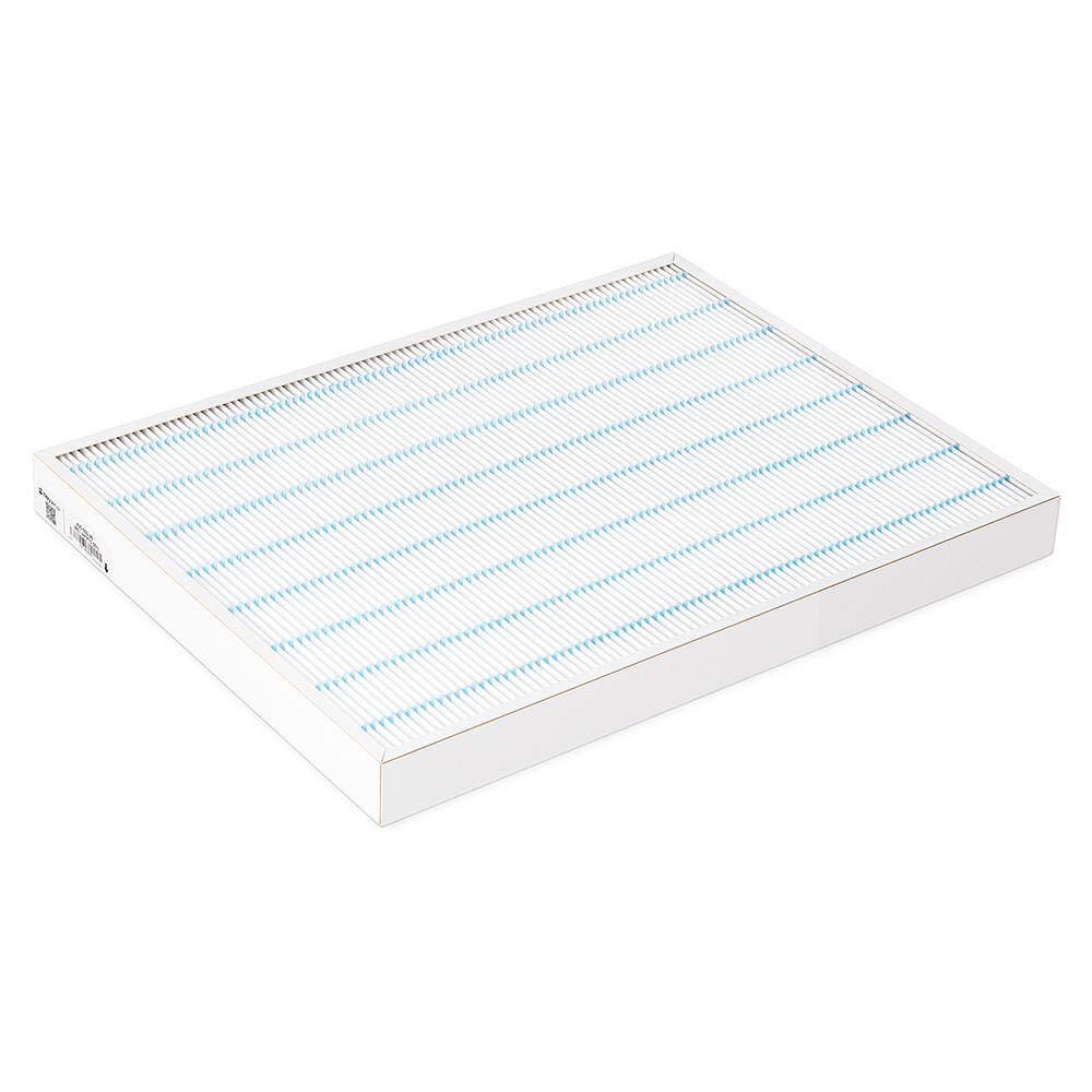 Filtr wykonany jest z wysokiej jakości plisowanego, syntetycznego medium filtracyjnego (plisowanie typu mini-pleat) osadzonego w wąskiej ramce. Zastosowanie wąskiej ramki pozwoliło zwiększyć powierzchnię filtracji i zmniejszyć opory przepływu powietrza. Filtr charakteryzuje się wysoką powierzchnią filtracji i wydłużoną trwałością z zachowaniem wysokiej wydajności filtrowania (przy cyklicznym odkurzaniu). Filtr wyposażony jest w czytelne oznaczenia o sposobie montażu.