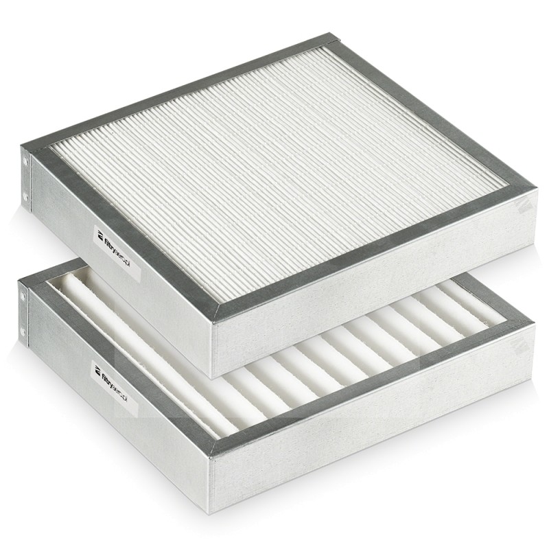 Filtry wykonane są z wysokiej jakości plisowanego, syntetycznego medium filtracyjnego (plisowanie typu mini-pleat) osadzonego w kartonowej ramce. Charakteryzują się wysoką powierzchnią filtracji i wydłużoną trwałością z zachowaniem wysokiej wydajności filtrowania (przy cyklicznym odkurzaniu). Dzięki zastosowaniu syntetycznego materiału filtracyjnego filtry wykazują się zwiększoną odpornością na czyszczenie i odkurzanie. Filtry wyposażone są w czytelne oznaczenia o sposobie montażu.