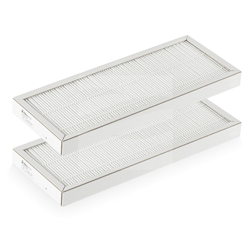 Komplet filtrów do rekuperatora Fränkische Profi-Air 250/400 Touch (350mm) składający się z dwóch przeciwpyłkowych filtrów klasy F7 (ISO ePM1 70%) wielorazowego użytku (o wydłużonej trwałości). Wysokiej jakości zamienniki nie ustępujące oryginalnym filtrom.